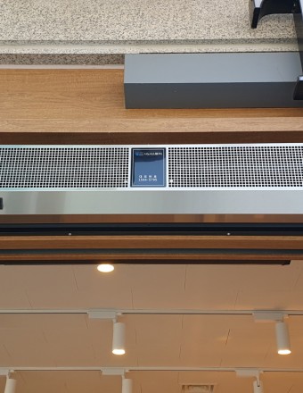 수직의 공기흐름을 만들어 매장의 출입구에 두터운 공기막을 형성