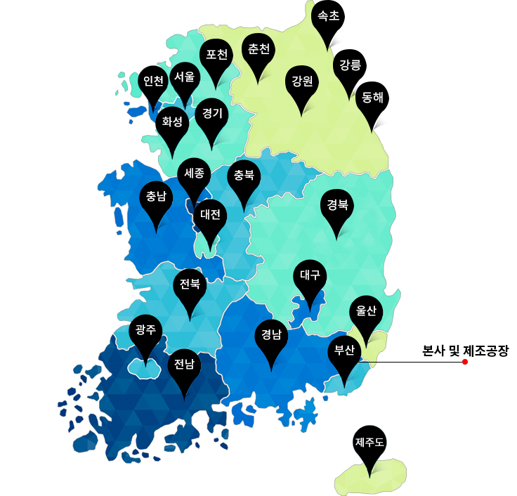 전국 설치 및 A/S팀 구성도