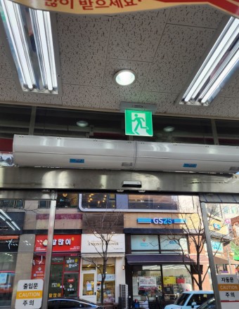 수직의 공기흐름을 만들어 매장의 출입구에 두터운 공기막을 형성