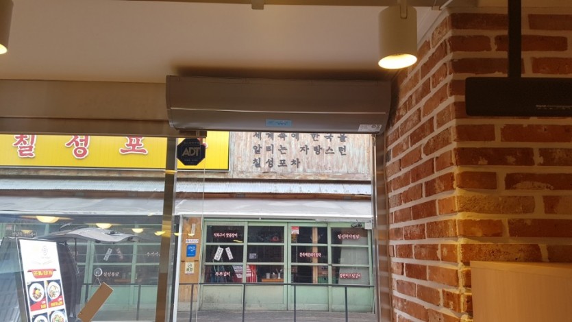 에어커튼 큰 장점:외부로 부터 매연,먼지,악취,벌레 등을 차단하여 쾌적함을 항상 유지시킵니다.