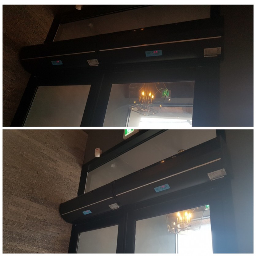 나노 시스템 에어커튼은 일자 형식의 순환으로 철저한 외기 차단 효과가 있고 효율적이며 타사 제품은 ㄱ자 형식의 순환으로 차단 손실이 있고 내구성이