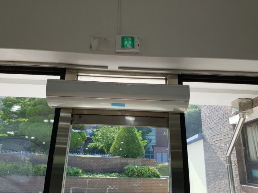 충남 도립대학교 구내식당 에어커튼 설치 사진입니다.